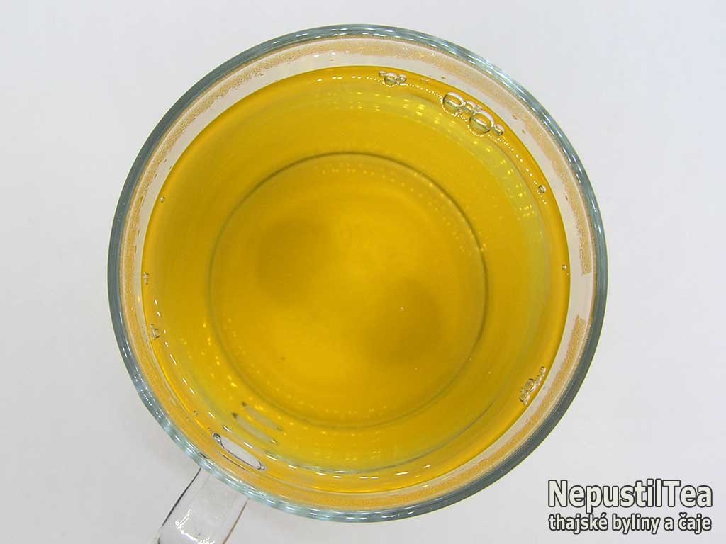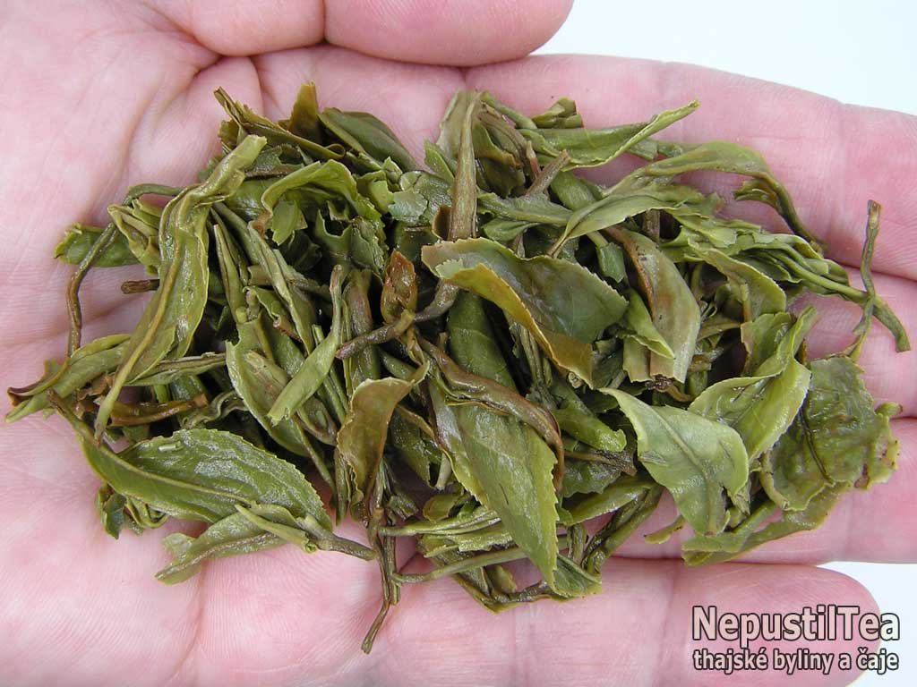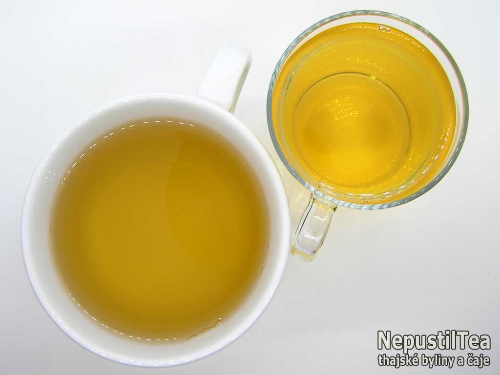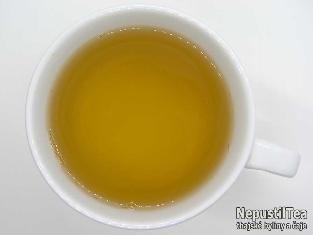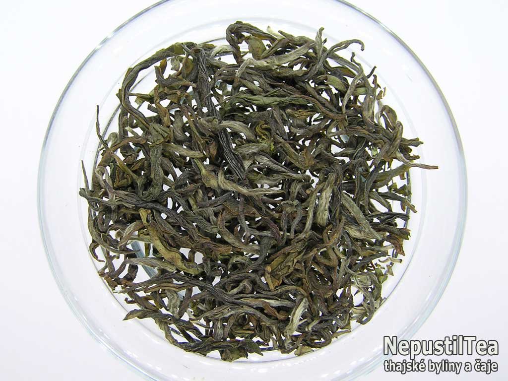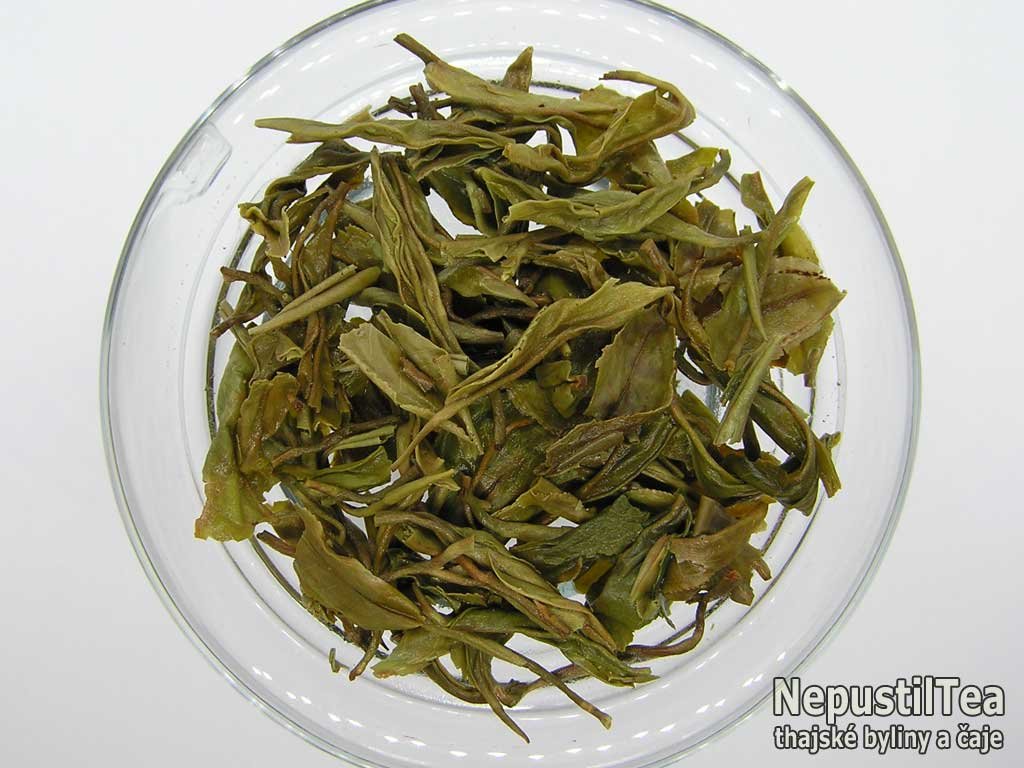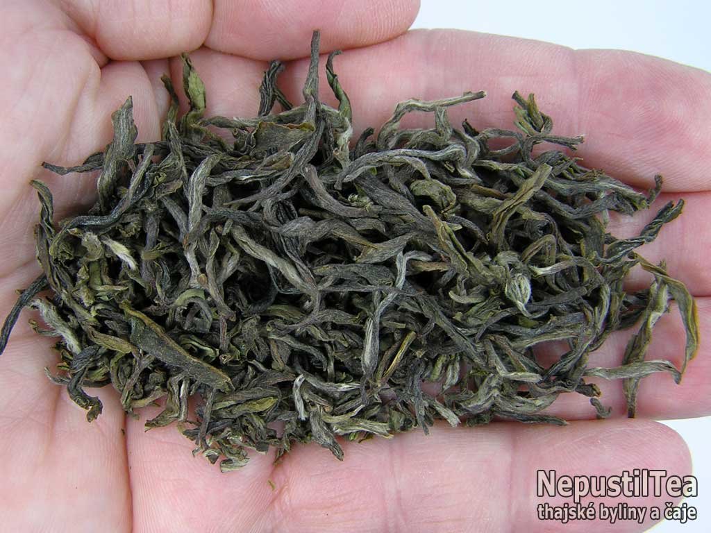 suchý čaj: pěkně rolovaný dlouhý celý list, "různozelený" s velkým podílem stříbrných tipsů, bez drobotiny s pěknou bylinnou "tipsovou" vůní