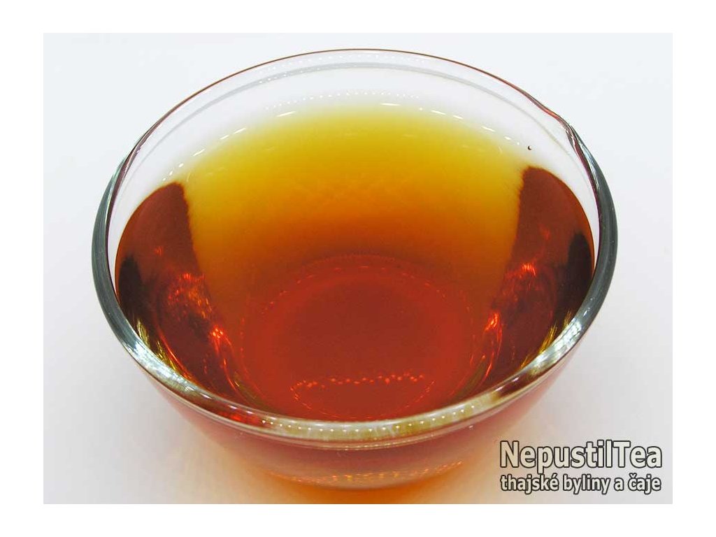 nálev: jiskrný, červeno-hnědý různé tmavosti (dle doby luhování a množství čaje), nehořknoucí, v dochuti sládnoucí s tóny zelené hrušky, ořechů, s notou máty