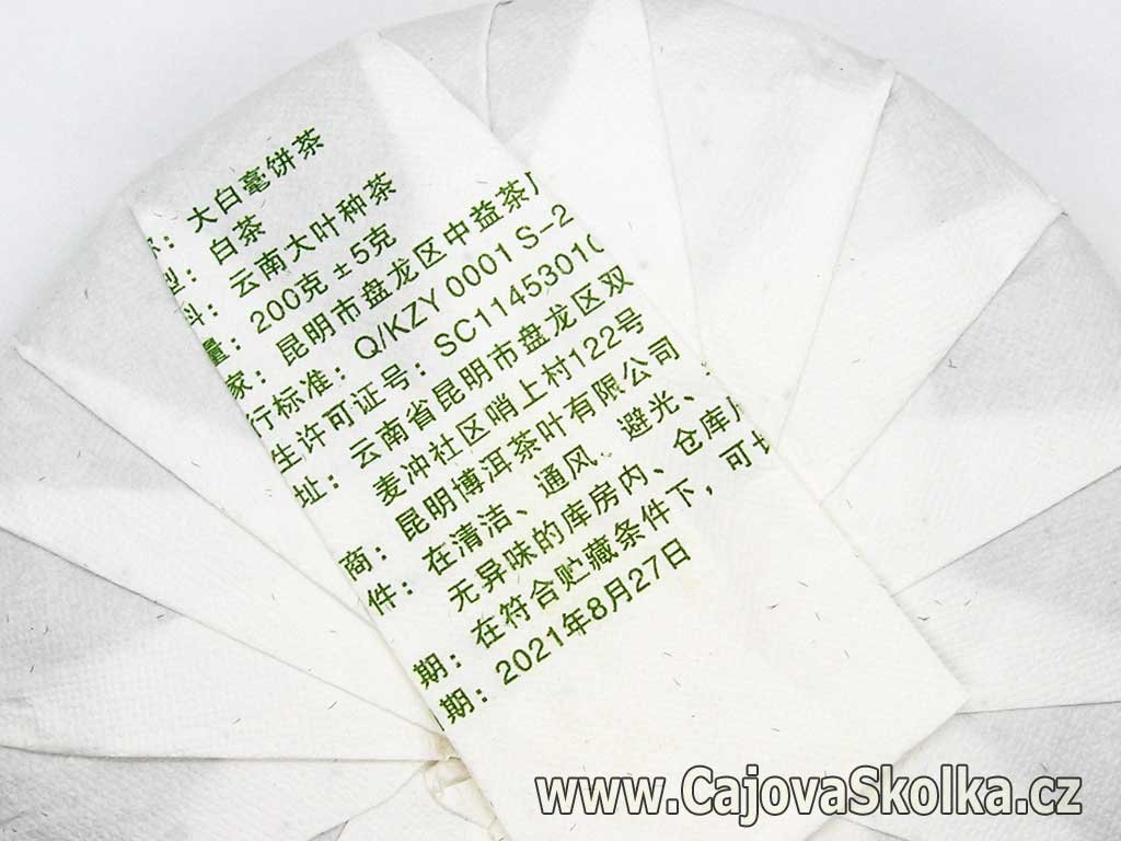 bílý (sheng) puch-er typu "Moonlight" - měsíční svit - ze Simao, Menghai, hmotnost (netto): 50 g, min. trvanlivost do: neomezeno-archiv
