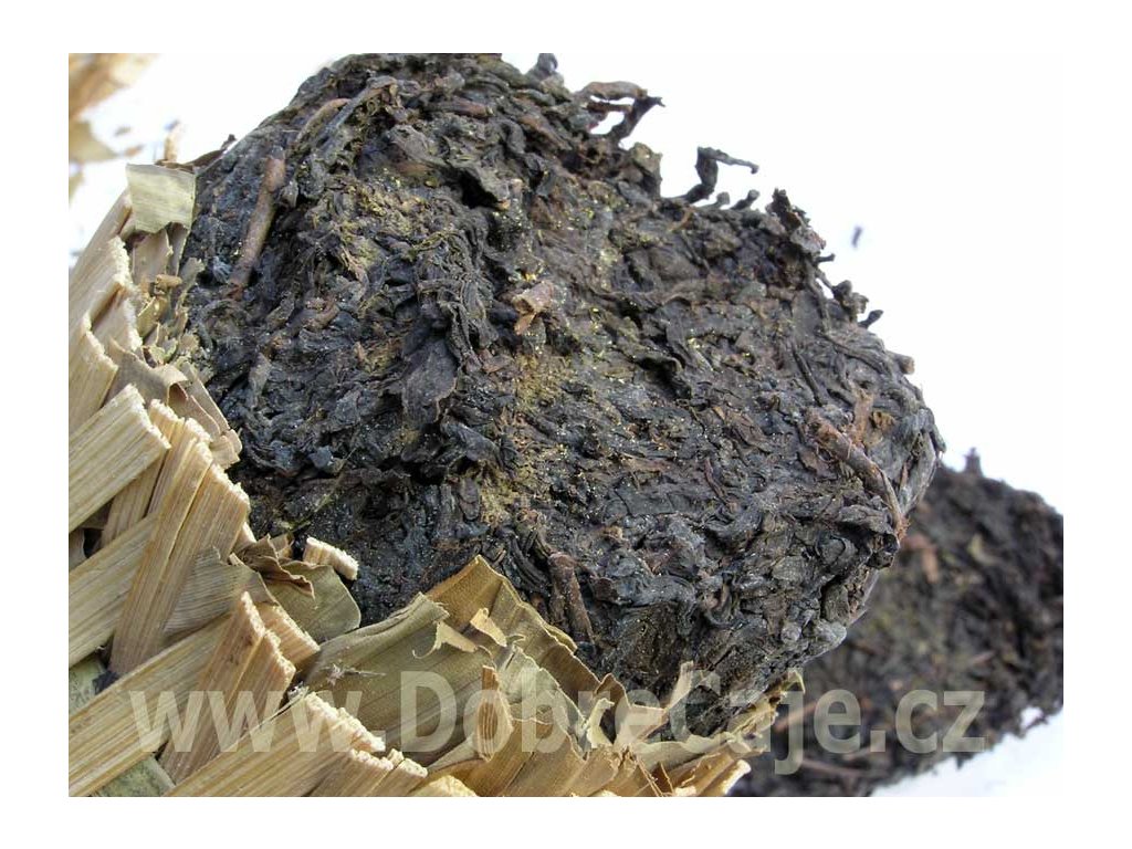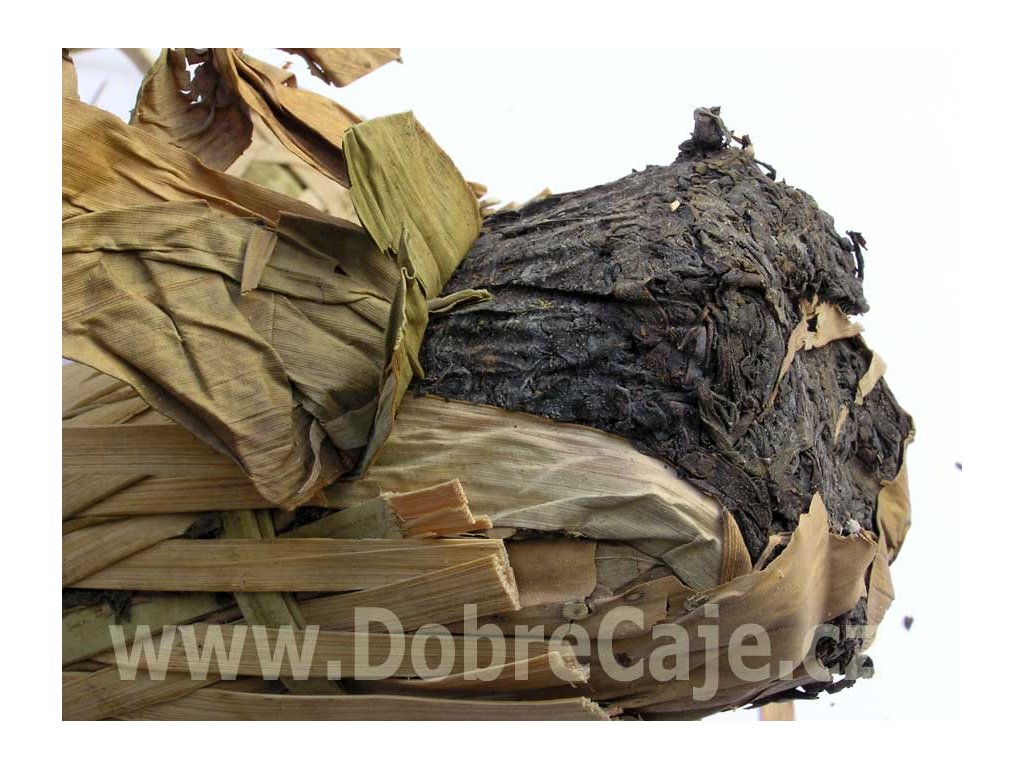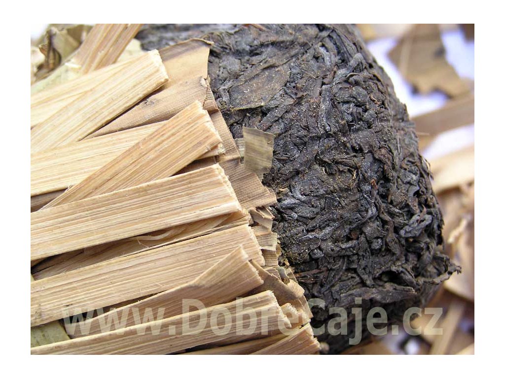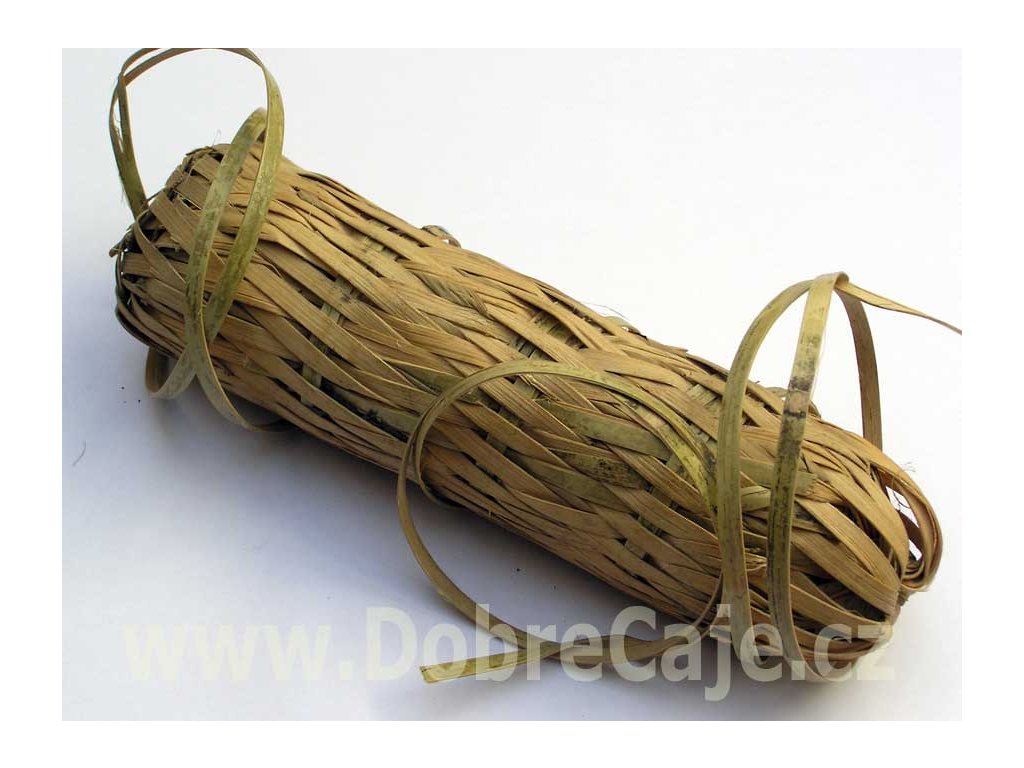 typ čaje: čínský tmavý čaj (hei-cha) lisovaný do tvaru válce a speciálně balený v přírodních materiálech