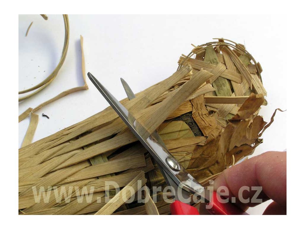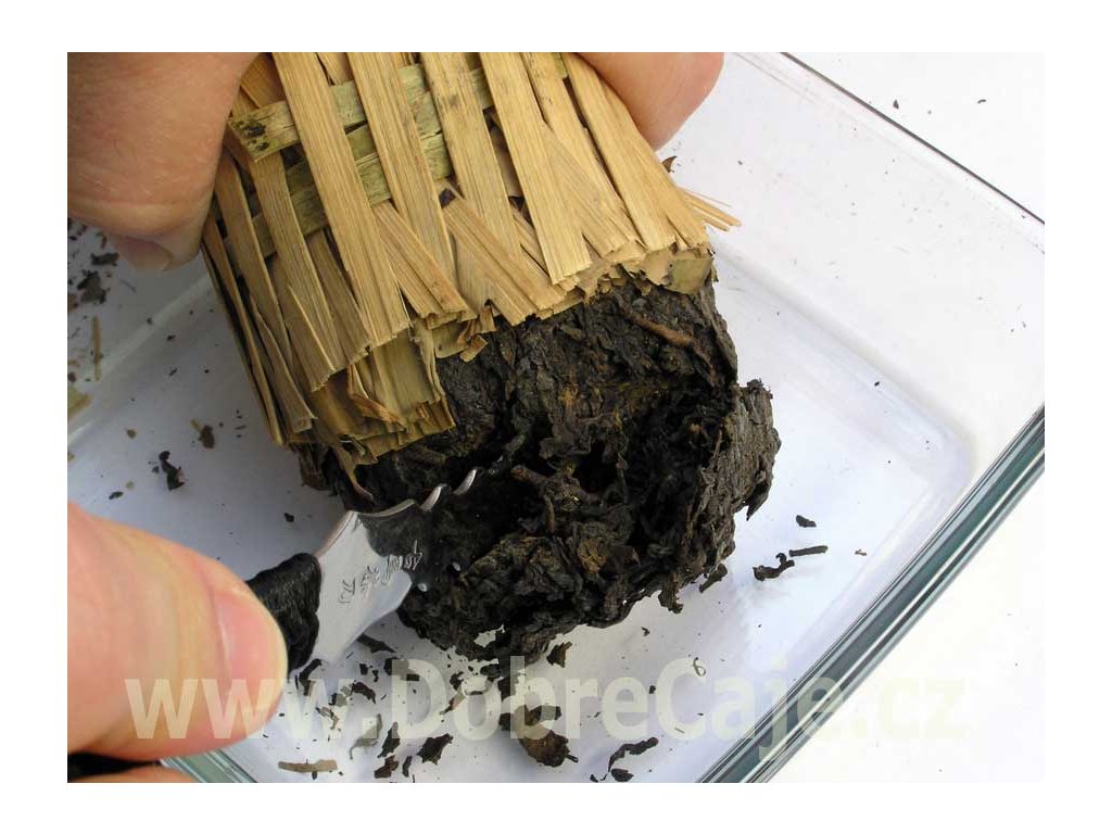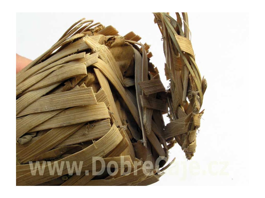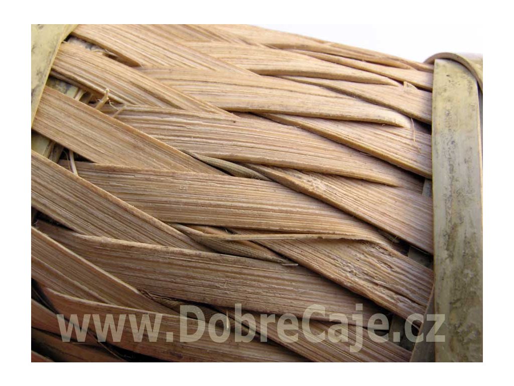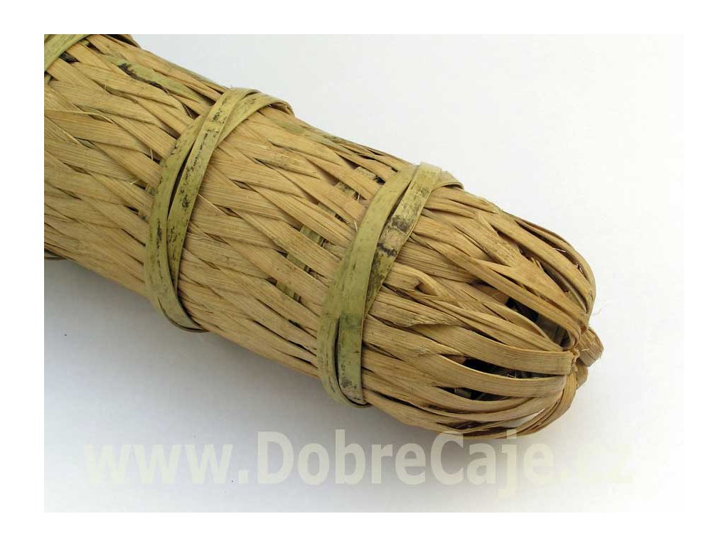 typ čaje: čínský tmavý čaj (hei-cha) lisovaný do tvaru válce a speciálně balený v přírodních materiálech