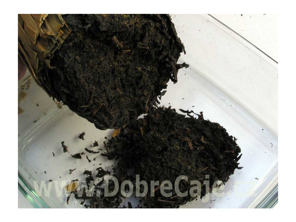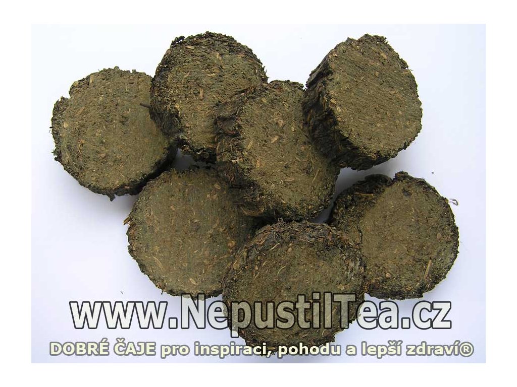 "unikátní lisovaný čaj z čínského Chun-nanu, od Anhua Tea Factory"