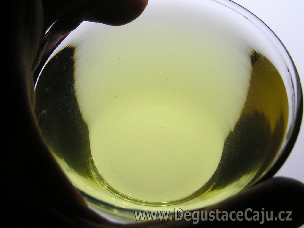 nálev: žlutozelený až zelený (v případě silných nálevů až "zlatožlutý"), aromatický, silnější, s projevy "umami", příjemnou nepatrně štiplavou dochutí, s tóny citrusů