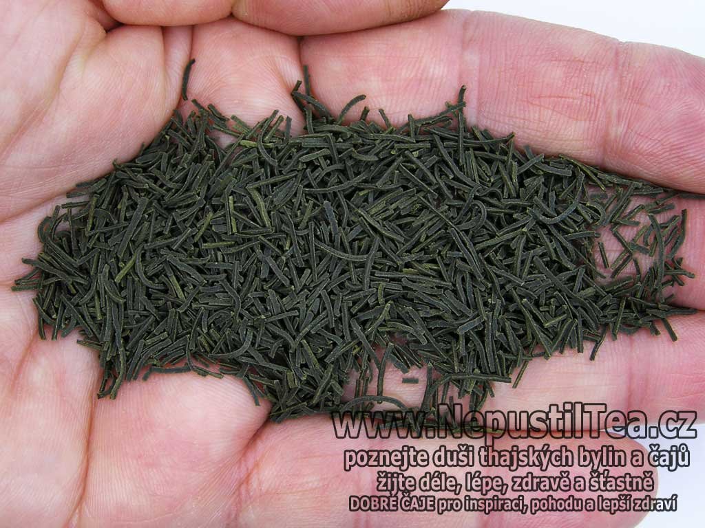 japonský zelený čaj speciálně zpracovaný (lu cha) s velkým množstvím kofeinu, ideální pro běžnou přípravu; čaj umí: několik svěžích nálevů, jež dobře povzbudí, probudí, ochladí a dodají energii; čaj vás zaujme: netradičním vzhledem, výkonem a chutí; čaj je vhodné pít: k probuzení a povzbuzení, zejména při duševní činnosti (má hodně kofeinu); původ: Japonsko; hmotnost (netto): 50 g; min. trvanlivost do konce 06/2028