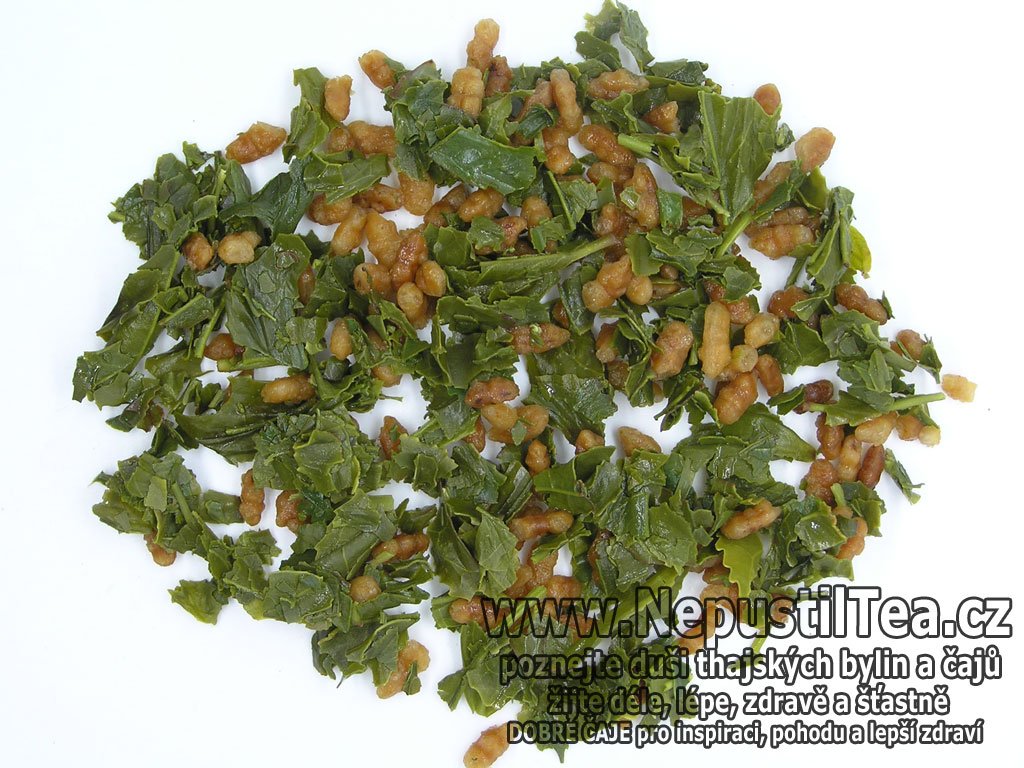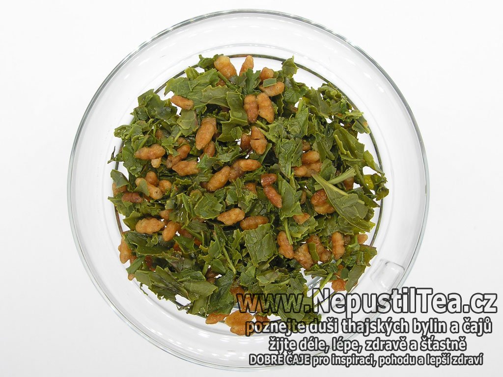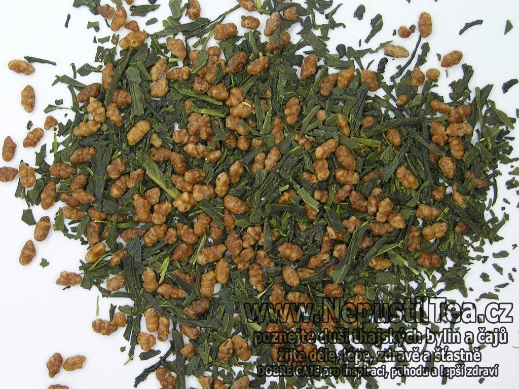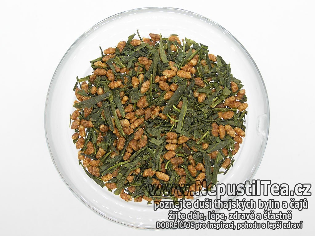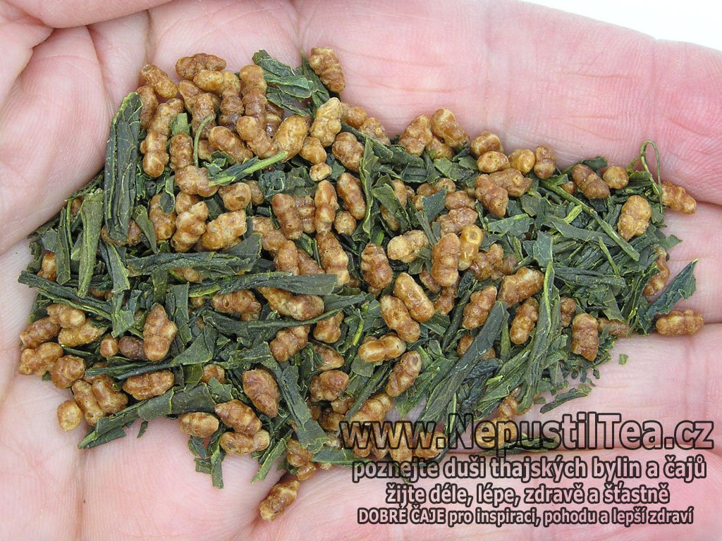 japonský zelený čaj s praženou rýží a menším množstvím kofeinu, hodí se k celodennímu pití, 25 g, minimální trvanlivost do: 01.08.2024