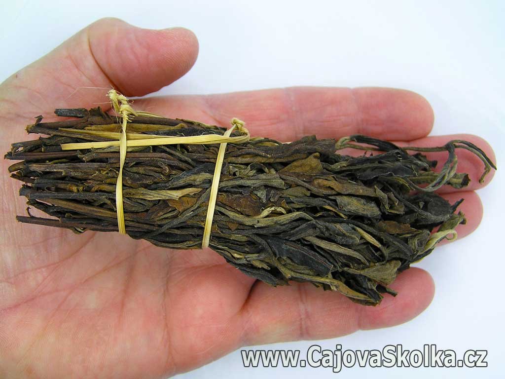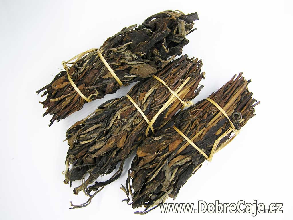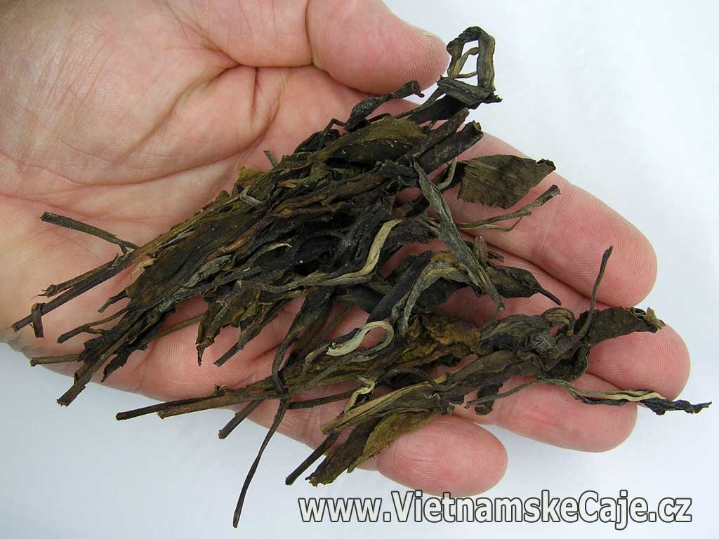 Domorodý, divoký čaj od vietnamské minority Zao s vlhce zralou, zemitou, herbální chutí a vůní, sladkou dochutí a klidně osvěžující náladou, hmotnost (netto): cca 20 g (jeden svazek), min. trvanlivost do: neomezeno - archiv