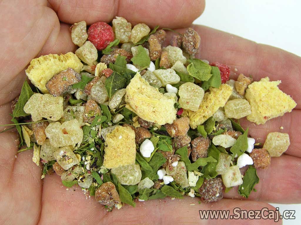 hmotnost (netto) a balení: 100 g (-3 %), třívrstvý, opakovatelně použitelný sáček se zipem (vložen silikagel, jež se nejí)