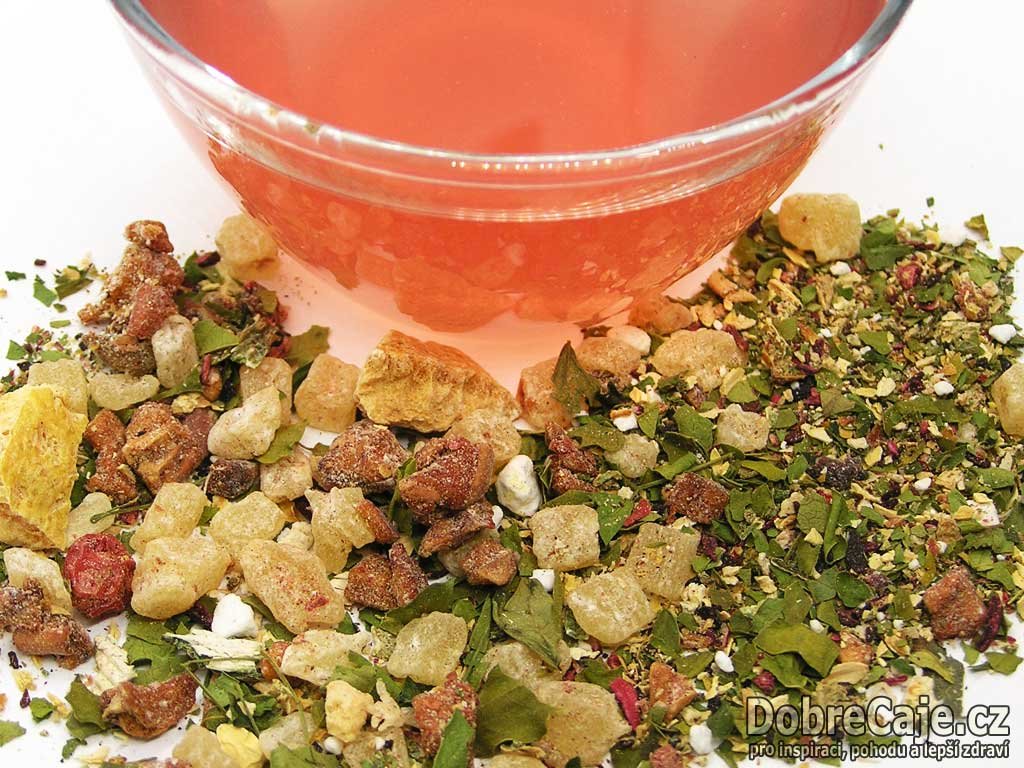 obr.: čaj je - díky ingrediencím - "pěkně vybarvený" :-)