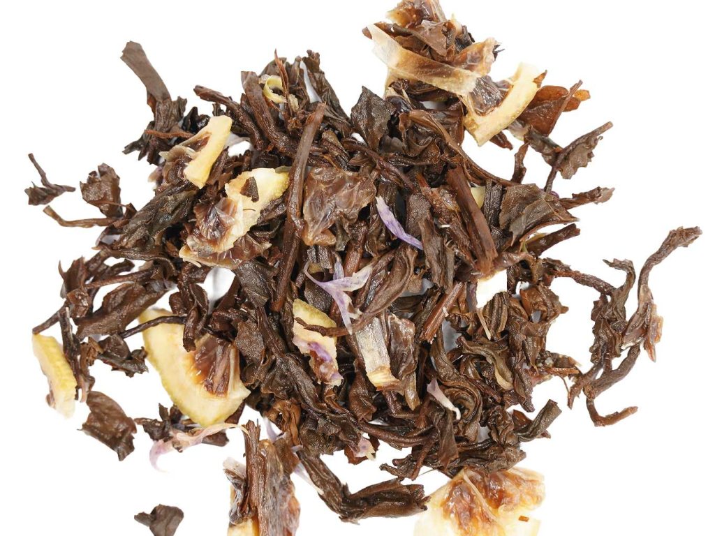 manufakturně vyrobený čaj - blend čistých přírodních surovin (4); vyrobeno z odrůd ásámských čajovníků a limetek a pomerančů rostoucích v oblasti Chiang Mai; černý čaj (správně "červený") je díky zpracování nepřeluhovatelný, zapomenete-li nálev slít, nic se nestane (!); kvalita bio (3)