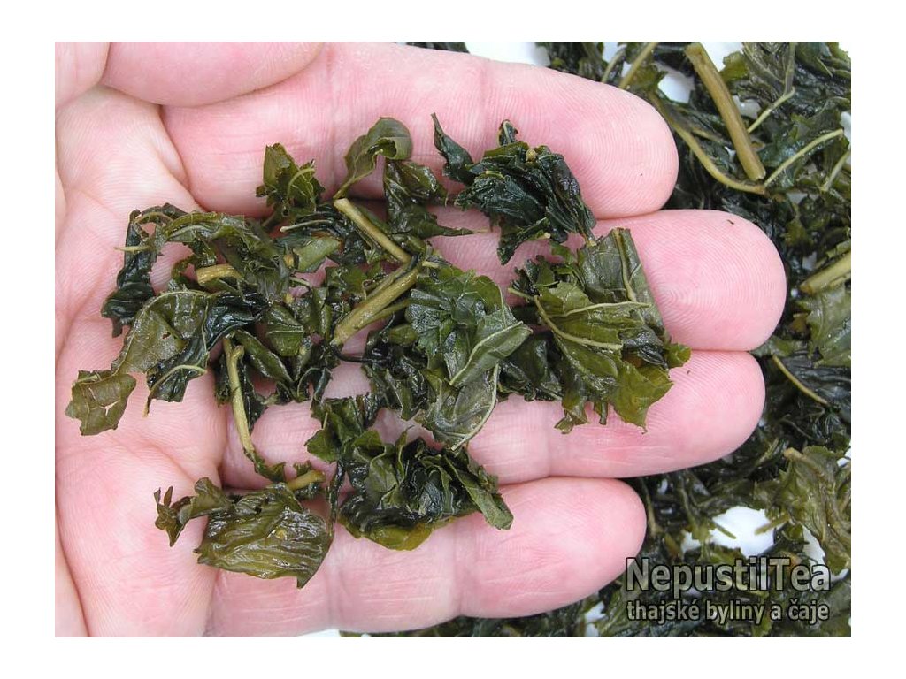obr.: zcela vyluhovaný list se barvou podobá listu thajského jiaogulanu