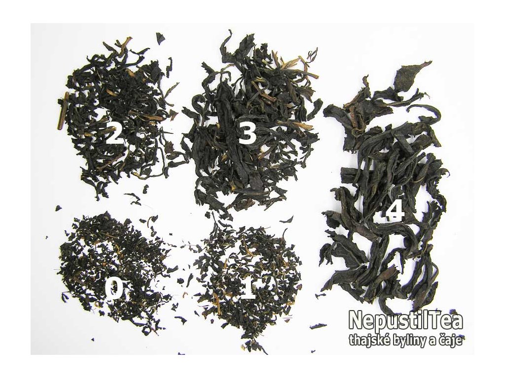 kvalita sběru a způsob zpracování a kultivar čajovníku: ručně sklízený (T+3) a zpracovaný, uplatňován je klasický postup (zavadnutí, rolování, oxidace, další rolování při sušení a třídění); ásámský (thajsky: ใบเมี่ยง, Bai Ming)