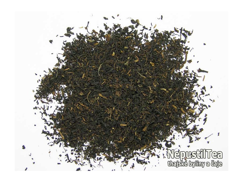 speciální černý čaj (Thai Black Tea, type 0 - thai hong cha) z provincie Chiang Rai, ideální pro přípravu thajského ledového čaje ("cha yen"), původ: Thajsko, hmotnost (netto) 50 g, min. trvanlivost do: 12. 05. 2028; čaj umí: silné, nehořknoucí nálevy; čaj vás zaujme: výkonností a použitelností; čaj je vhodné pít: k probuzení, povzbuzení, na žízeň, k práci i jídlu (má hodně kofeinu)