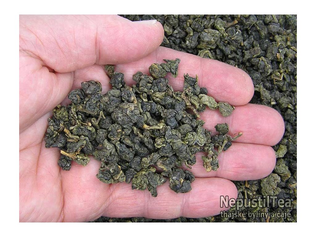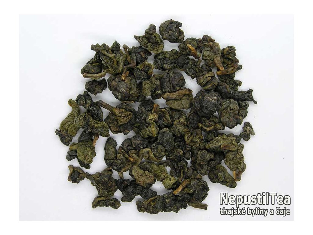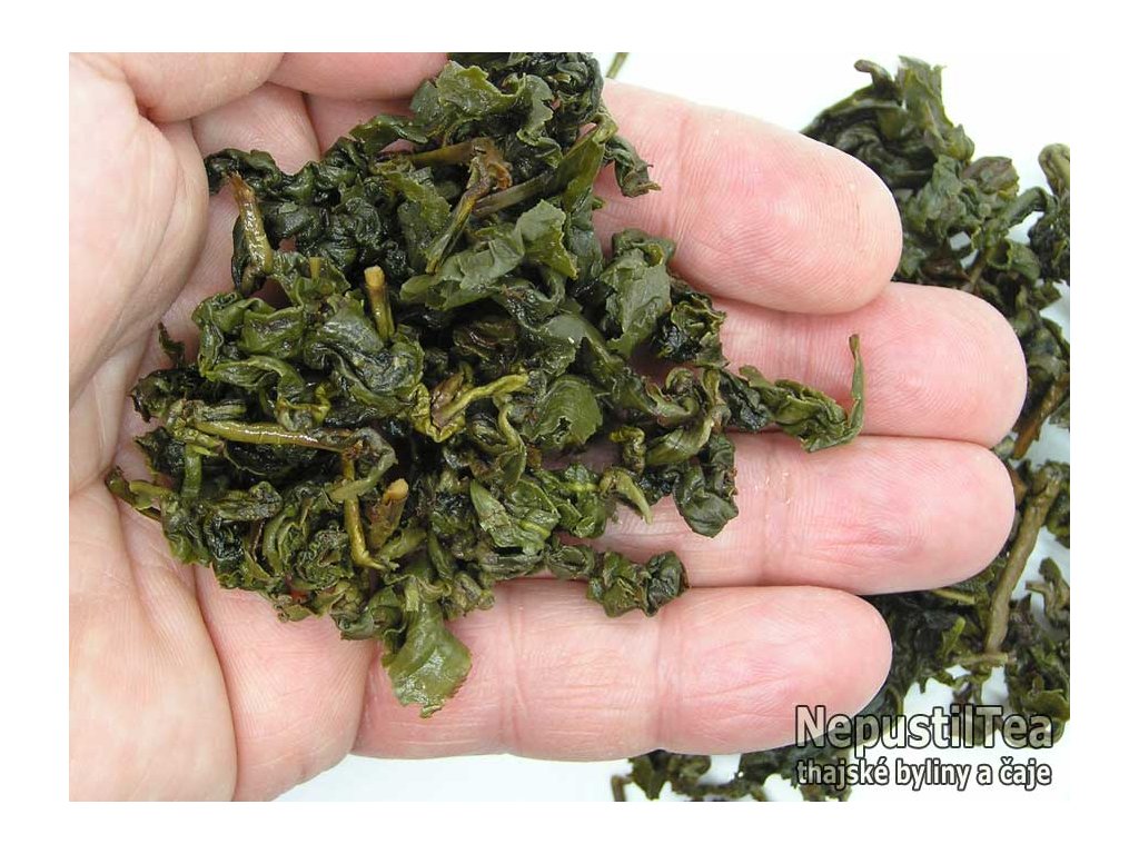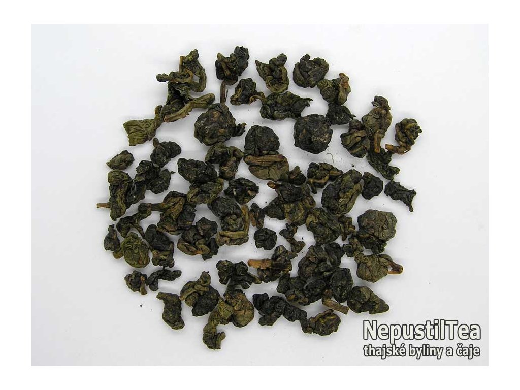 více oxidovaný rolovaný polozelený čaj (qing cha), ideální pro Gong Fu Cha; původ: Thajsko; hmotnost (netto) 50 g; min. trvanlivost do: 11.06.2025