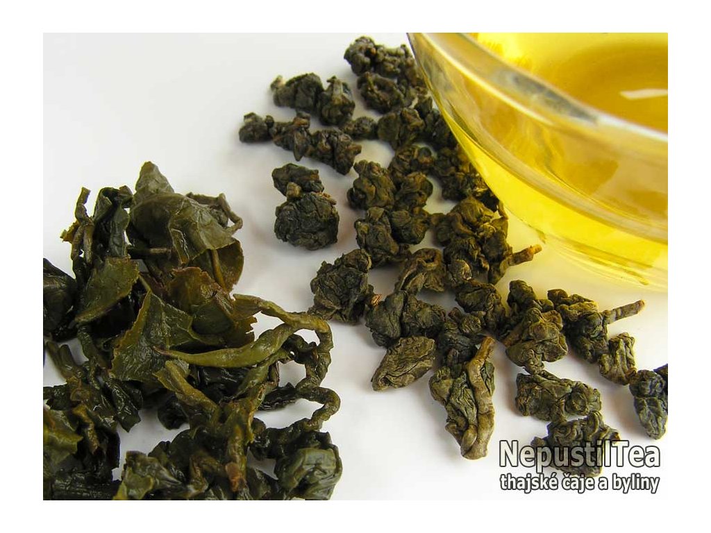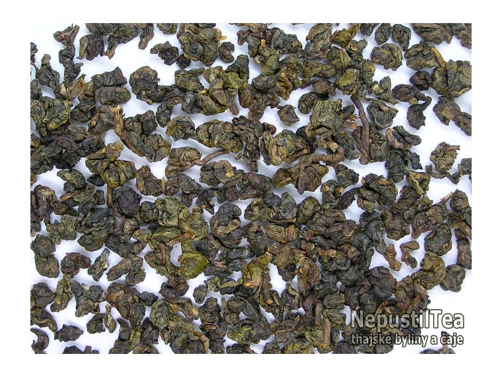 typ čaje a jeho složení, další označení: thajský polozelený čaj (oolong), rolovaný, silně pečený, 100% čaj pravý - konce flešů (vrcholových přírůstků větviček čajových keřů), rolovaný; Thai Jing Shuan Oolong Tea Deeply Roasted Tea, Jing Shuan No.12 Roasted, Thailand Jin Xuan