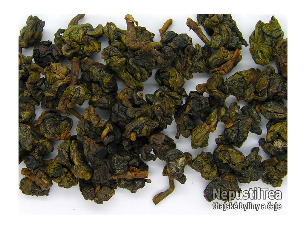"Doufám, že si pamatuješ vše, co jsem ti už mnohokrát řekl. Ne? Takže znovu :-(. Jedná se o polozelený čaj typu Gao Shan (14) má čajinky větších průměrů než ostatní podobné oolongy, vzhledem může připomínat Dong Ding; čajinky se rozvíjí poměrně pomalu a převážně obsahují konce čajových flešů (čerstvých přírůstků čajových výhonků); pečený čaj se v nálevu rozvíjí ještě méně rychleji než nepečený a lze s ním experimentovat (méně teplá voda + delší luhování resp. teplejší voda + kratší luhování, velmi malá konvička + vroucí voda + extrémně krátké nálevy)."