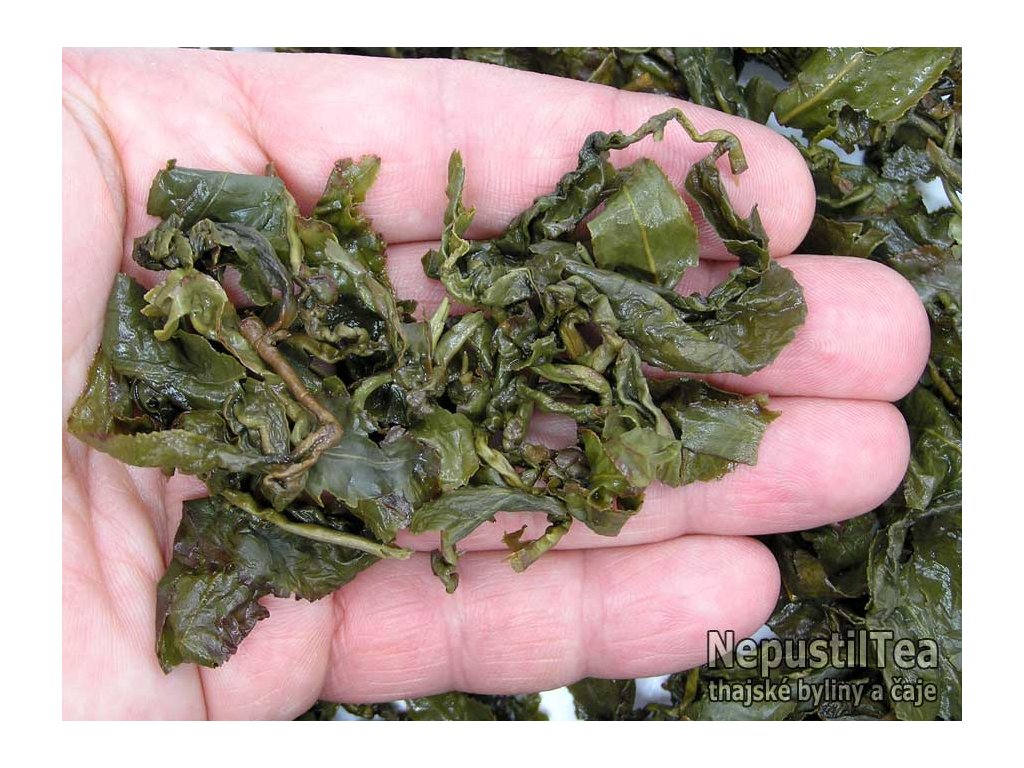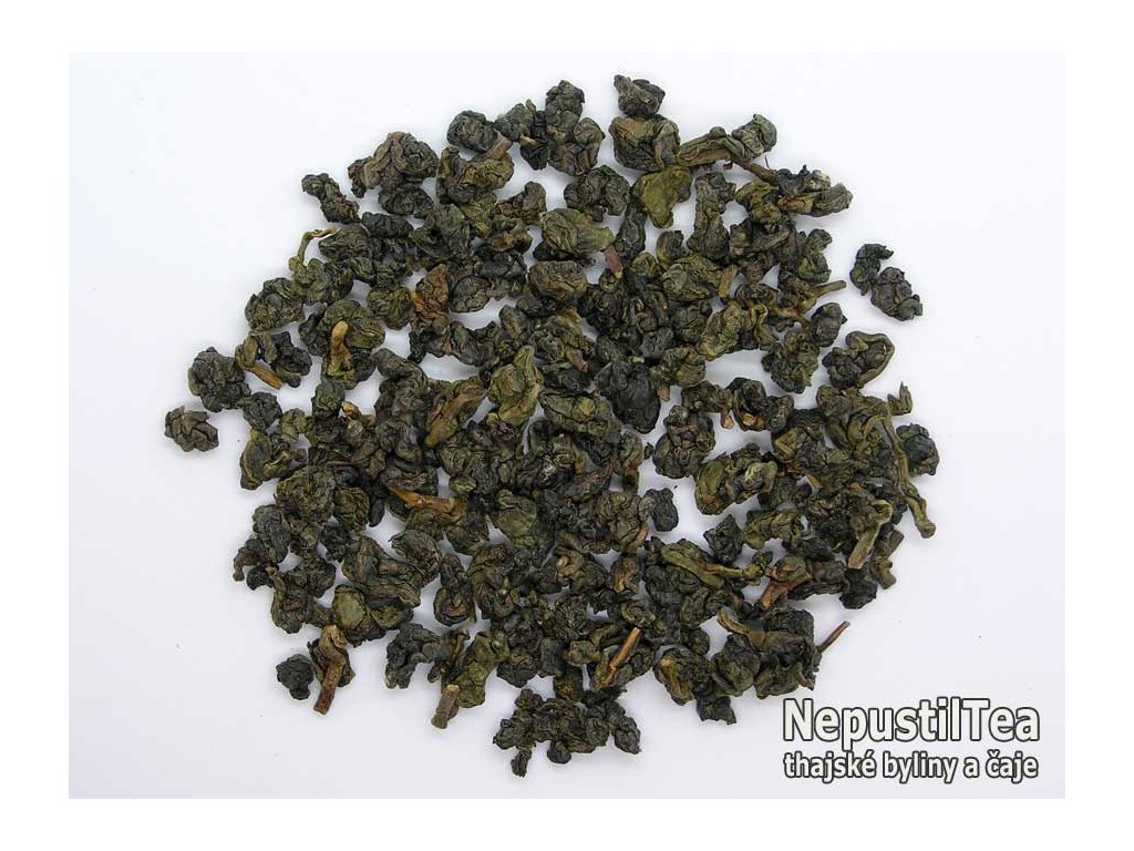 typ čaje: thajský polozelený čaj (oolong) rolovaný do pevných čajinek