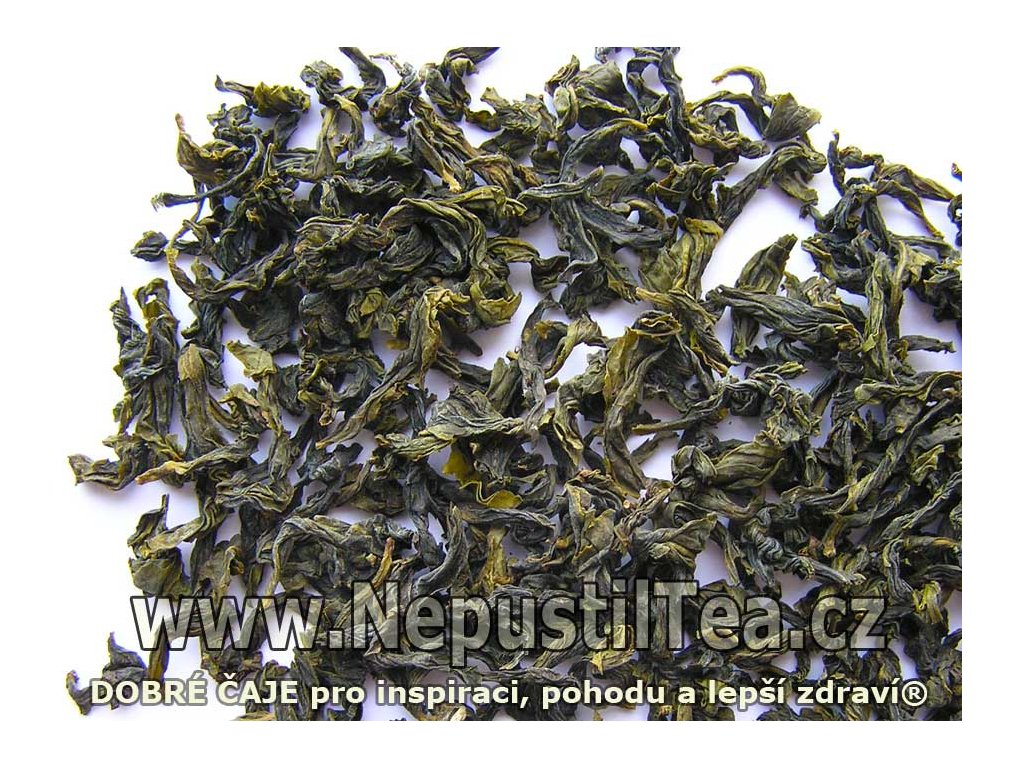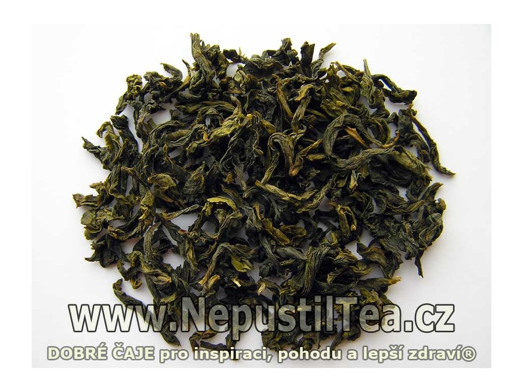 "originální polozelený, nepatrně oxidovaný čaj typu Pao Chung [Pao čung] (doslova "balený čaj"), s podélně rolovaným listem, ručně tříděný - bez částí stonků a řapíků listů"