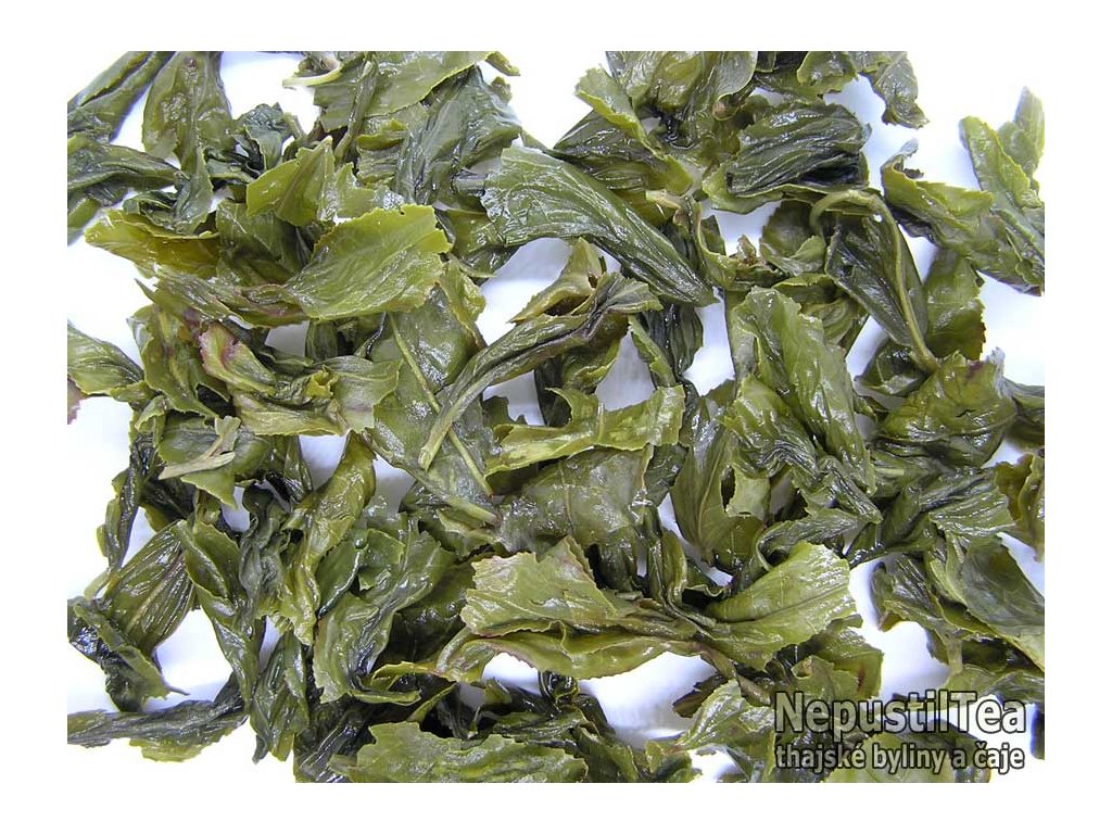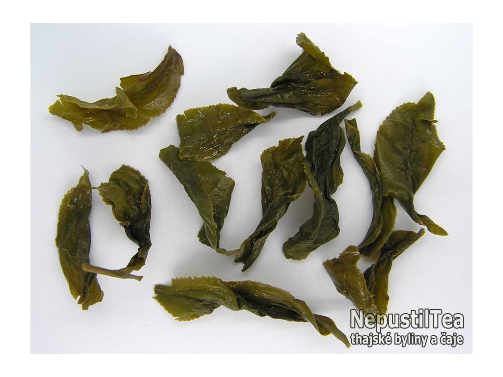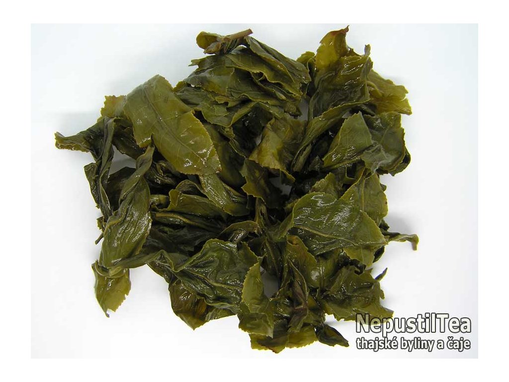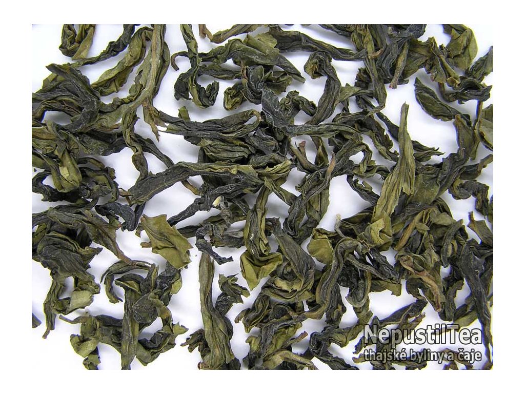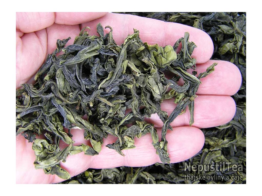 typ čaje: thajský polozelený čaj (oolong) velmi málo oxidovaný a podélně rolovaný