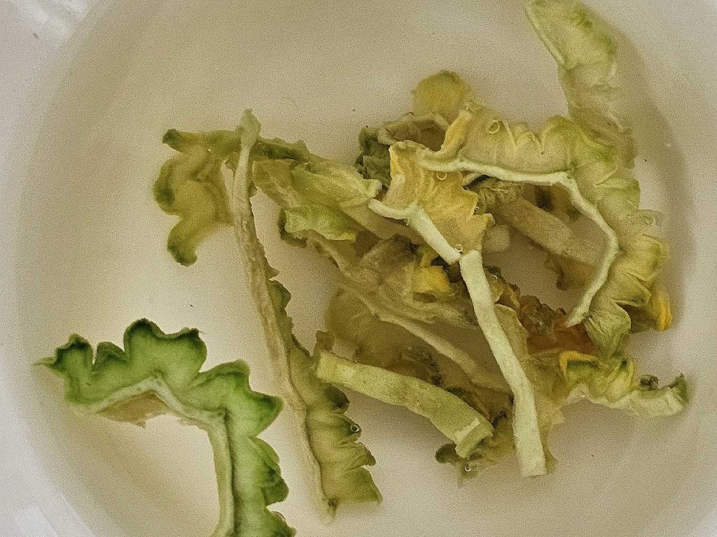 obr.: vyluhované měkké plátky již nejsou tak hořké = lze je sníst nebo použít při vaření (polévky), pečení (do mletého masa, k masu) a do zeleninových aj. salátů