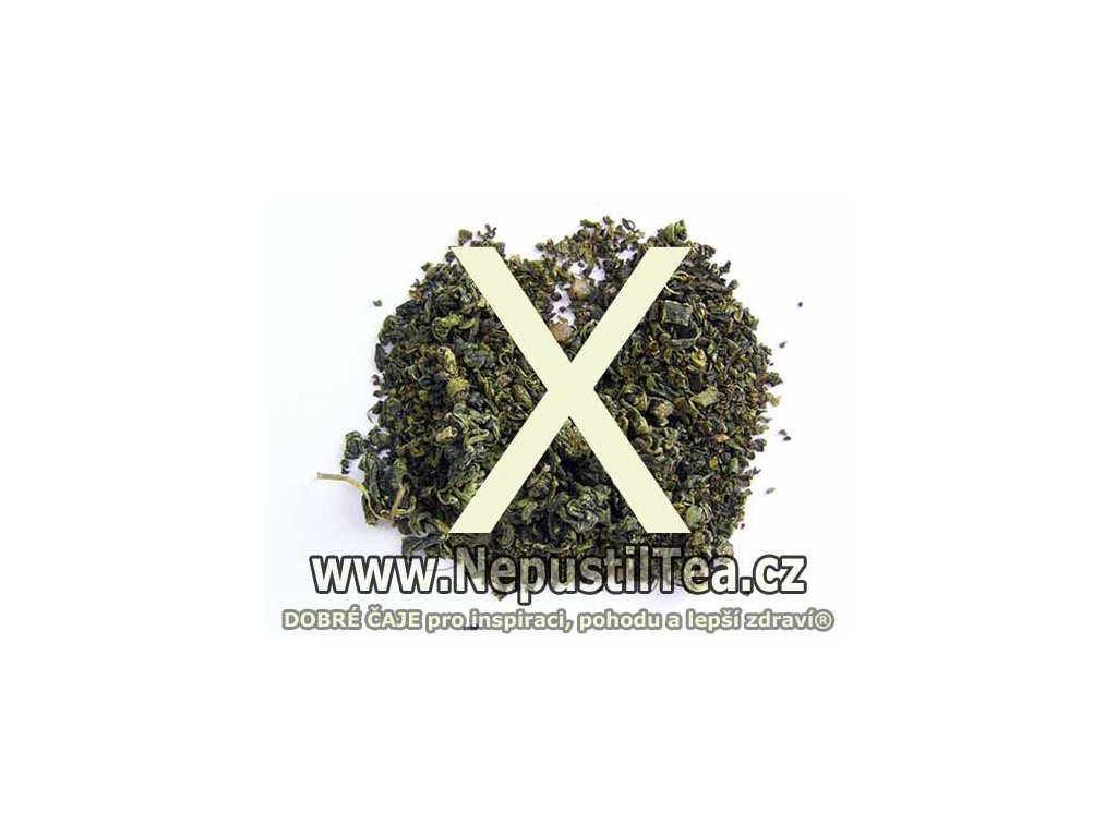suchý čaj: sbalený list byliny do "čajinek" s ojedinělými částmi řapíků a lodyh