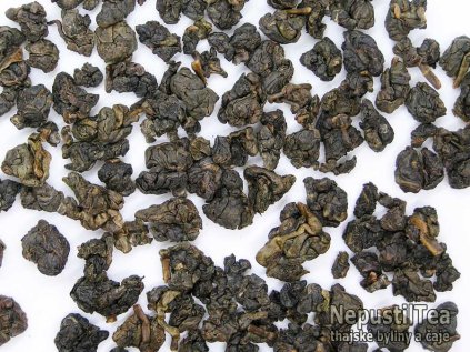 více oxidovaný rolovaný polozelený čaj (qing cha), ideální pro Gong Fu Cha; původ: Thajsko; hmotnost (netto) 50 g; min. trvanlivost do: 11.06.2025